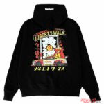 そして注目はLIBERTY WALK×スッパイマンのコラボアパレルだ。Tシャツとパーカーをラインアップし、サイズはM・L・XL・XXL。Tシャツの希望小売価格は9800円、パーカーは19800円である。デザインは「改造」と「沖縄」の2種類。ホワイトとブラックの2色展開で、先行販売エリアも分けられているというこだわりぶりだ。クルマを着る、という感覚をリアルに味わえるアイテムである。