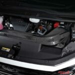 性能向上もさることながら、視覚と聴覚に訴えかける仕上がりもブリッツらしい「攻め」の姿勢が光る。エンジンルームを開けた瞬間に目に飛び込んでくるのは、美しい織り目のCFRP(カーボンFRP)製ケースだ。