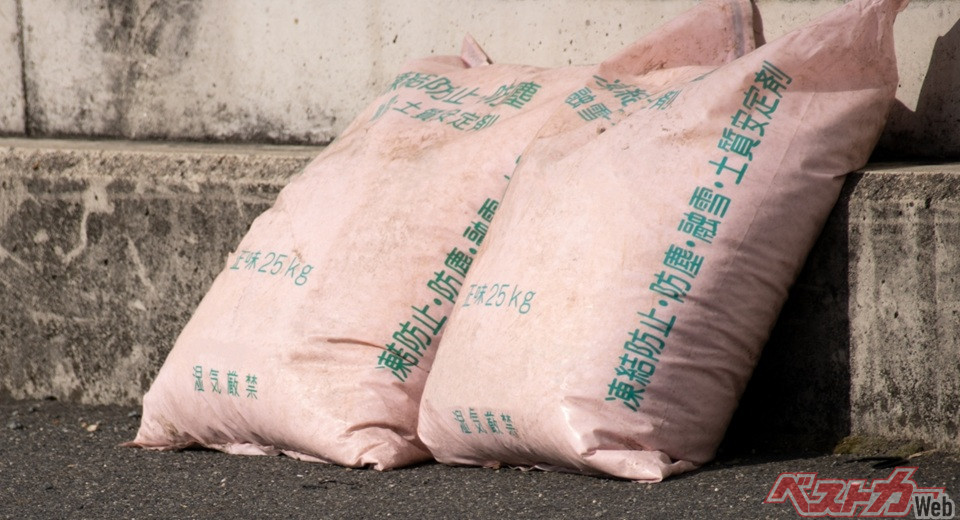 「ウチの地域は雪が降ってない」と思われるかもしれないが、実は路面温度が0℃付近まで低下するおそれがある場合、橋の上など凍結しやすい区間に予防的に融雪剤が散布されることがある(自治体によって基準は異なる)。