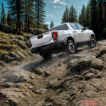 インテリアはランクル250に似た水平基調デザイン。12.3インチのコンビメーターやセンターディスプレイはタッチ式となる模様。ワイヤレスチャージャーやUSBポートをセンターコンソールに配置し、後席にもUSBポートを用意する。またランクルFJには無い、シートベンチレーションが新型ハイラックスには用意されるのだ。車格としては、ランクルFJよりもワンランク上の印象を受ける。