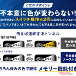 実用面での進化も見逃せない。純正スイッチのON/OFF操作だけで、ホワイトとイエローの2色を瞬時に切り替え可能。天候や路面状況に応じて最適な色温度を選べるのは、フォグランプとしての基本性能をしっかり押さえた仕様だ。さらに、誤操作による意図しない色変更を防ぐ「スイッチ2回操作設定」も採用されており、日常使用でのストレス軽減にも配慮されている。