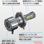 さらに、独自の放熱構造により、点灯30分後でも約98%の光束維持率を確保。長時間走行でも「最初は明るいが徐々に暗くなる」といったLED特有の不満を抑えている点は、実用性の高さとして評価したい。