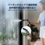 性能面でも抜かりはない。High/Ecoの2段階水圧切替や、5種類の噴射パターンを備えたノズルにより、ボディの軽い汚れからタイヤ周りの泥汚れまで幅広く対応。連続噴射ロック機能も搭載され、長時間作業時の疲労軽減にも配慮されている。