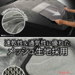 吸水性能の要となるのは“ツイストループ構造”。ねじれた長い毛足によって表面積を拡大し、一度に大量の水分を吸収する。これにより拭き跡が残りにくく、水アカやシミの発生を防ぐ効果も期待できる。さらに柔らかいマイクロファイバー素材により、コーティング施工車でも安心して使える点もポイントだ。