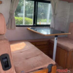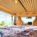 一方、神奈川県横浜市に登録されたハイエースベースのモデルは、家具職人が手がけた木質インテリアが特徴だ。いわば「動くログハウス」とも言える1台で、車内に広がる木の香りや温かみのある空間は、従来のキャンピングカーとは一線を画す。大人2名+子供3名が就寝可能で、プロジェクターなどのオプションも用意されており、“車内で過ごす時間そのもの”を楽しむユーザーに刺さる仕様だ。
