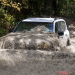 試乗コースは、傾斜20度を超える登り下りをはじめ、モーグルやロックなど人工的なガレ場、そして水深70cmに達する渡渉など、かなりシビアな設定。