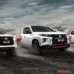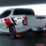 今回、タイで発表されたトライトンとパジェロスポーツの各々の特別仕様車、ラリーアートはかつて三菱がラリーにワークス参戦していた頃のマシンを彷彿とさせるレッドとシルバー、ブラックの3色が入ったストライプ調のデカールに「RALLIART」ロゴ入りのマッドフラップなどを装着している。