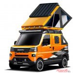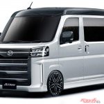早くもそのアトレーをベースにダイハツがカスタマイズ。ブラックアウトされたフロントマスクやルーフ、大径アルミホイールが装着された、ローダウンスタイルで、商用バンとは思えないクールでプレミアムな世界観を表現している。