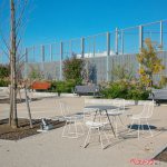 各ドッグランにはベンチが一つ設置されており、ワンコだけでなく人間もリラックスできる。人工芝の引き詰められたフィールドの端には木が植えられていて、フェンスとの緩衝体が作られているのもGood!