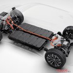 床下の駆動用バッテリーは長さを自由に変えられるから3列シート車にも使えるし、また、駆動モーターの配置によってFF、RR、4WDを使い分けることもできる。