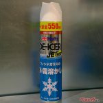 ここまで、保冷保温ホルダー、ヒータークッションと暖房効果のあるアイテムを紹介してもらった。最後に紹介するのは、冬の寒い朝ウインドウガラスに付いた氷や霜を解かす解氷剤だ。