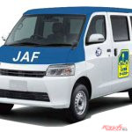 具体的にはJAFのバン型サービスカーにポータブル型の充電器を搭載し、電欠したEVに給電。充電量については、充電できるスポットまで走れる量とのことだ。ガソリン車におけるガス欠時の応急対応のEV版と捉えるとわかりやすいかもしれない。