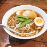 “日本一細麺”と輝く看板に大きく書かれた麺の細さに納得し、エリマキらーめんの海苔の数に喜ぶ、スッキリした醤油味ラーメン。