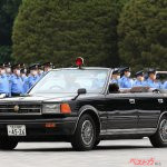 年頭視閲式で注目を集める車両のひとつが儀礼用のオープンカーだ。クラウンやセドリック、またキャデラックなどが使われているが、いずれも年代物の旧車が多く活躍している。430セドリックもまだわずかに残っているが、そろそろ見納めのタイミングだろう。