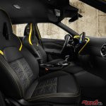 N-SPORTのインテリアには、シートはJUKEの文字がエンボス加工され、イエローのステッチが個性を主張する。またアルカンターラのシートの随所には独特のパターンでキルティングされている。