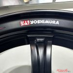 さらにスポーク側面や強度に影響しない部分にサイドカットを施し、剛性は確保したままで大幅な軽量化も実現している。1本あたりの重量は4.6kg。センターキャップやリム部分にあしらわれるヨシムラのロゴも素敵だ!