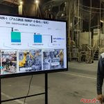 発表会では実際にSOFCのシステムも報道陣に公開。日産デザイン部が手がけたというSOFCの外観は、モダンで先進的なデザインに仕上がっている。この後、実際に報道陣には現在カーボンニュートラルに向けた取り組み(アルミ鋳造)を行っている栃木工場の内部も併せて公開された。