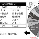 2010年の回答ではリードしたコペンだが、昨年絶版になり、軽自動車という抽象的な答えが1番になった。