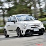 アバルトF595はそれまで販売されていたアバルト595に代わって2022年7月から販売がスタート。直4、1.4Lターボは最高出力165ps、最大トルク21.4kgmを誇る。ノーマル仕様の595の最高出力145ps、最大トルク18.4kgmからパワーアップしていた。