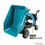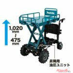 ポイントは、掃除機からコーヒーメーカーまで動かす、あのマキタ18Vバッテリー(BL1860B)を2本搭載し、36Vで駆動するところ。電動昇降が可能なフラットフレーム仕様「CU601D」と、荷台を傾けて積み下ろしできるダンプバケット仕様「CU602D」の2タイプが用意されている。最大積載量は平地で300kg、登坂能力は12°と、見た目以上にパワフルだ。