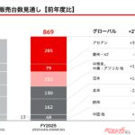 小売販売台数の通期見通しは86万9000台(期初比マイナス9000台)とした。北米は16万2000台(前年比-13%)と苦戦見込みだが、それでもカナダのアウトランダー、メキシコのエクスフォースが健闘しているため期初見通しから9000台積み上げ、日本は13万台で前年比+10%、主戦場のアセアンも28万5000台見込みで前年比+14%を見込む。