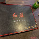 セレモニー終了後、2階で昼食をいただいたのだが…そのお弁当箱がなんと!「紅旗」デザインの弁当箱であった。こ、これはスゴイ。このお弁当箱はわざわざ中国で製造して日本に送ってもらったそうだ。