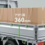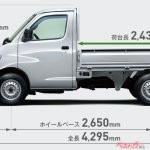 カタログ燃費は新しいWLTCモードで12.9km/L(2WD・5MT)となっている。トラックの荷台フロア長は2480mmとなっていて、これは軽トラックのハイゼットトラック(フロア長:2030mm)と比較してもゆとりのサイズとなる。