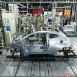 ロボットに加え、匠と呼ばれる高い技術を持つ職人さんたちの手作業を組み入れ、ばらつきの少ない、モータースポーツで勝てるクルマが誕生している。約400人が就業し1日の生産台数は60~70台。