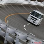 ウエット路面は常に散水された専用路面。こちらでも明らかに走り始めから手応えがある。不安なく曲がっていける。ブレーキングからハンドルを切っていくと当然スムーズに曲がっていくが、そのときの安心感が違う。