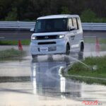 比較試乗はダイハツ・タント。高速道路や街乗りを想定した直線&オーバルコースと、ウエット路面コースでLuKとLuKⅡを乗り比べた。