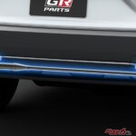 リアビューの印象をガラリと変え、後ろ姿から“速さ”を語らせるGRリヤスカート。リヤバンパーのサイドを張り出した造形は、デザイン性の向上はもちろんのこと、ステアリング応答性の向上を狙った空力的意図も込められている。
