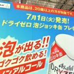 そんなスーパードライ生ジョッキ缶にノンアルコールビールが登場した。その名も『スーパードライゼロ泡ジョッキ缶』だ。発売は7月1日からということで、販売に先立ち千葉県の幕張メッセで6月27日〜29日に開催されている東京アウトドアショーで無料配布が行われた(ノンアルコールビールだが年齢確認などを行い、未成年などには配布しないようにされていた)。