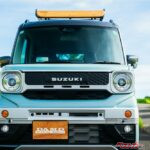 WR-Vのカスタム「REVERB」が大ヒット中のDAMDが、またまた話題を集める新作を発表した。今度の素材はスズキ・スペーシアギア。ただでさえ快活なスペーシアギアをよりアクティブにブーストさせる、魅力的なフェイスチェンジキットだ!! 推奨ホイールやルーフラックもあり!!!