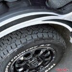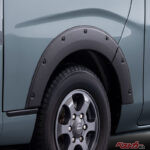 今回セットされたのは「JAOSフェンダーガーニッシュ typeX(タフブラック仕様)」。ブラックダミーボルトが並ぶ重厚なデザインと、高耐久な塗装仕上げが特徴で、1BOX特有の平面的なボディに立体感とタフさを与える。