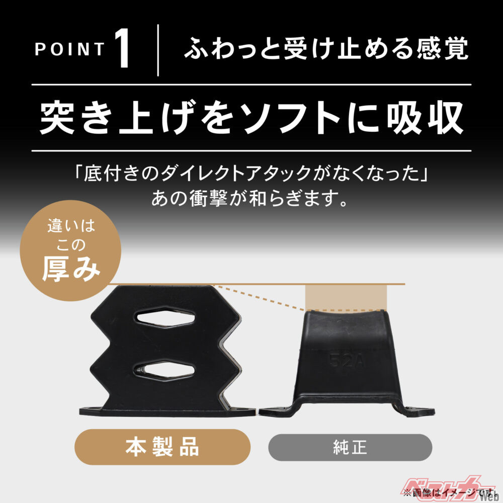 この新型バンプラバーの特徴は、乗り心地の向上だけではありません。重積載時でも沈み込みすぎず、しっかりと支える構造になっており、作業車やキャンピングカーといったハードユースでも安定した走行性能を発揮します。