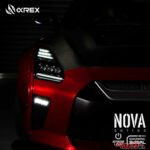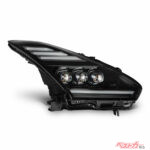 AlphaRex NOVA LEDプロジェクターヘッドライトは、複数のLEDプロジェクターと光るライトバーを組み合わせた大胆なデザインが特徴です。これにより夜間はもちろん、日中でも存在感は抜群。
