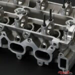 シリンダーヘッドSUB-ASSYは、燃焼室に切削加工を追加し、鋳肌が残る面積を減らしたことで、圧縮比のばらつきに起因する個体差を低減することに成功。吸気ポートは塗型処理を施して、未加工状態での表面凹凸を抑えている。