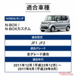 適合車種は、JF1/JF2こと2011~2017年式の初代N-BOXおよびN-BOXカスタム。どのグレードにも適合します。