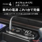 ハイエースは仕事車としてスマホ、タブレット、無線機など多数のデバイスを利用するケースが多い。本製品はType-A/Type-Cの各1ポートを備え、さらにPD20W・QC22.5Wの急速充電にも対応。