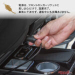 電源供給は“フロントのシガーソケットに差すだけ”という手軽さも大きい。