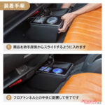 取り付けに工具は不要。助手席側からスライドしてフロアトンネル上に置くだけで完了する。さらに、以下の点も見逃せない。