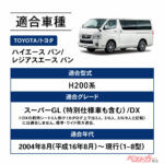 まさに“200系ハイエースのスタンダードパーツ”と呼べる適合範囲だ。