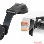 「車用マグネットスマホホルダー」は吸盤でダッシュボードに固定するタイプ。スマホを貼り付けるだけで簡単にセットできるのがポイントです。2段階の駆動アームやボールジョイントによって角度調整も柔軟に行える模様。