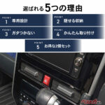 専用設計なので、サイズもピッタリ。これなら、装着後に隙間ができることなどの心配も和らぎます。また、走行時に小物が触れ合って音が出たり、擦り傷が気になったりしないよう、内側はフェルト生地が採用されているの評価したいところ!