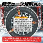 ベルト式のチェーンを1本ずつ装着する分割式構造により、必要な本数だけをタイヤに取り付けることが可能。ジャッキアップ不要で装着できるため、急な降雪時でも対応しやすい点が大きな魅力となっている。