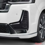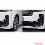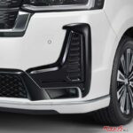 バンパーワイドガーニッシュは、フロントを顔に見立てるなら、いわゆるほっぺにあたる箇所に取りつけるアクセサリ。表情に重厚感とワイド感を与えるデザインを採用したとのことで、スパーダならではの堂々とした印象や存在感をより強く打ち出すことを狙ったそうだ。
