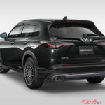 サイドスポイラーは標準より約45mm低く、リアアンダースポイラーは約20mm下がっているとのことで、フロントとの統一感を絶妙なバランスでまとめている。無限らしいスポーティな方向性と、SUVとしてのラギッド感を両立させる広がりがは健在だ。