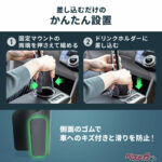 装着方法も非常に手軽で、工具不要。ドリンクホルダーに差し込むだけで設置が完了するうえ、固定部にはクッション素材を採用し、走行中のガタつきを抑制している。直径約10cmまでのホルダーに対応するため、多くの車種で使える汎用性も備える。
