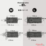 もちろん紫外線や熱だけでなく、雨、霜、花粉、黄砂、夜露への対策にも使用可能。気になるサイズは、Mサイズが114cm×60cmで145g、Lサイズは150cm×60cmで190gとなっている。Lサイズは2026年2月に加わったばかりで、メーターやタンデムシートまで広く覆いたいユーザーにとって嬉しい追加だ。