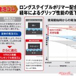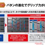 標高が上がり、雪が降り出していると圧雪路。興味深いことに圧雪路では案外タイヤ性能の差がつかない。降ったばかりの雪や圧雪って、トレッド面の凹凸でグリップを創り出す。冬用長靴の底によくあるパターンをイメージしていただければいいだろう。一定以上の性能を持つタイヤなら、圧雪や新雪でコントロールしやすい。